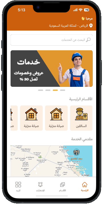 يوفر التطبيق خدمات متعددة تشمل الصيانة، التنظيف، النقل، وغيرها – لتلبية جميع احتياجاتك في مكان واحد.