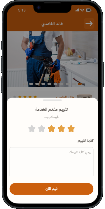 قيّم تجربتك بعد انتهاء الخدمة عبر تقييم نصي أو بالنجوم، أو قدّم ملاحظات خاصة للإدارة مرفقة بصورة لضمان الجودة.